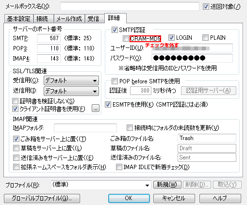 僕はベッキーを使っているのですが、ポートを587に変更するだけではなくCRAM-MD5のチェックを外してください。これで送れるようになります。