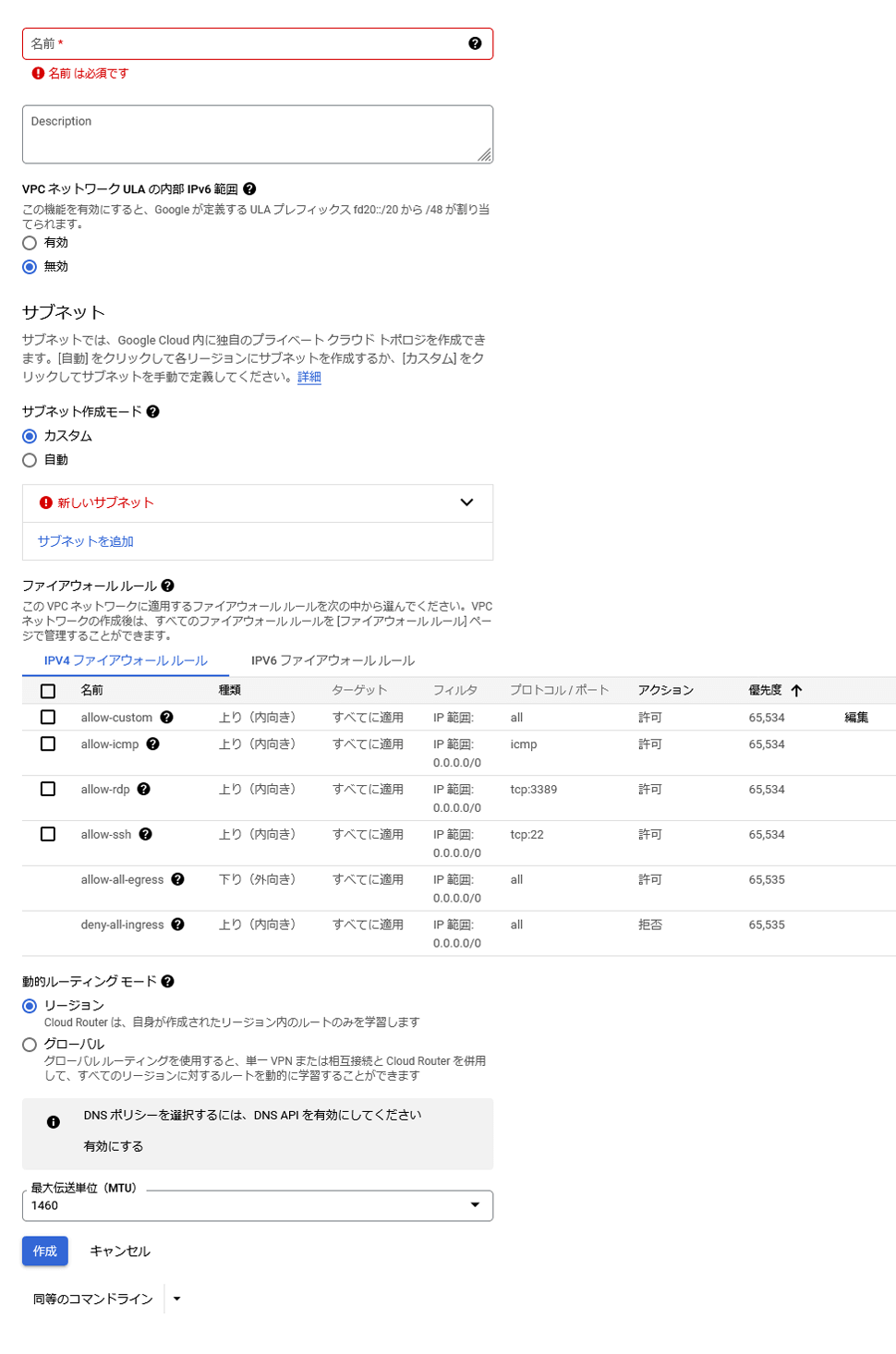 - 動的ルーティング モード:リージョン
