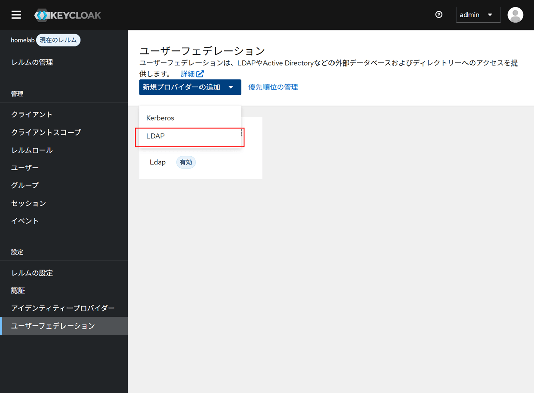 Keycloak:設定-フェデレーション