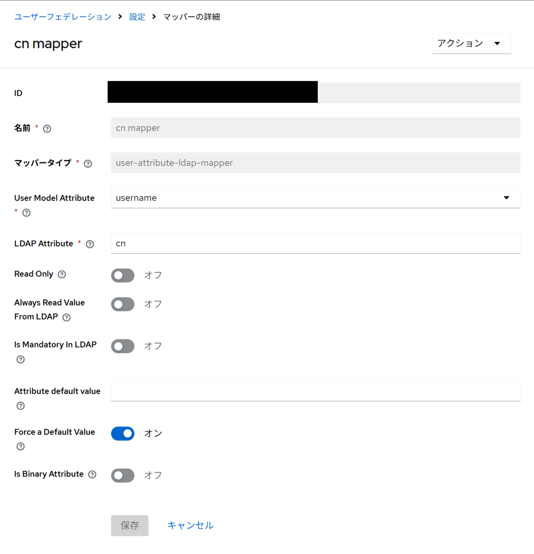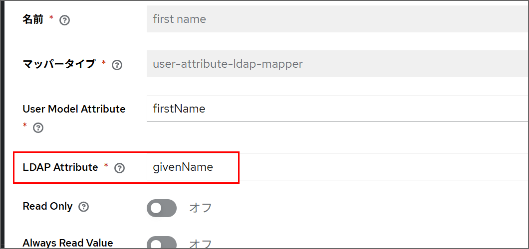 その他のマッパー一覧のLDAP Attributeの値