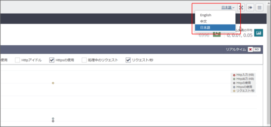 ダッシュボードの右側に言語設定があるので、それを日本語に変更します