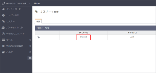 リスナーをクリックして、リスナー名Defaultをクリックします