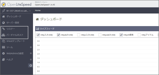 公式のナレッジにも載っていないため、紹介されている多くのサイトは単一ドメインで動き、複数ドメインを設定するとエラーになるので注意が必要です。OpenLiteSpeedは記事執筆時最新版の1.4.45となります。