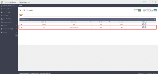 OpenLiteSpeedでは、SSLの設定する箇所が2箇所あります。