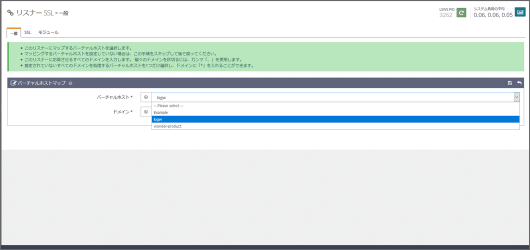 リスナー設定 > バーチャルホストのSSL となります。しかし、リスナー設定が間違っていると、リスナー設定でいれている証明書が表示されるため、エラーとなります。