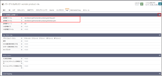 - 秘密鍵ファイル:/etc/letsencrypt/live/wonder-product.jp/privkey.pem