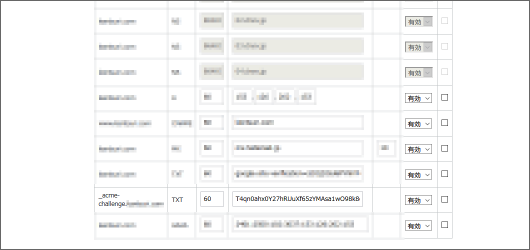 - ホスト名は_acme-challenge となります