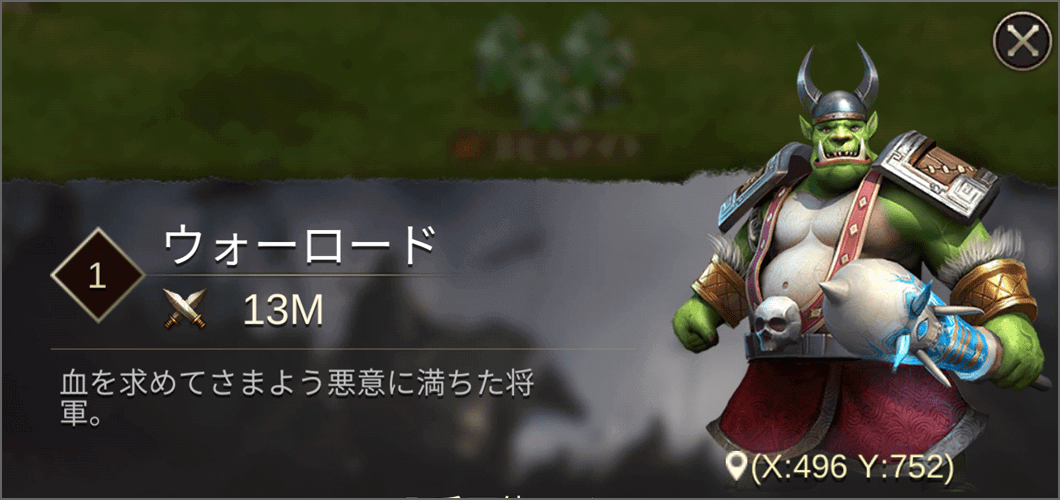 ウォーロードは騎兵に強く歩兵に弱いボスモンスターとあります。