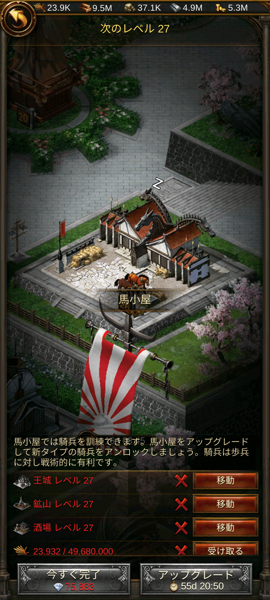 酒場を27にしないとアップグレードできません。城レベルが上がったらすぐにしないといけないですね。