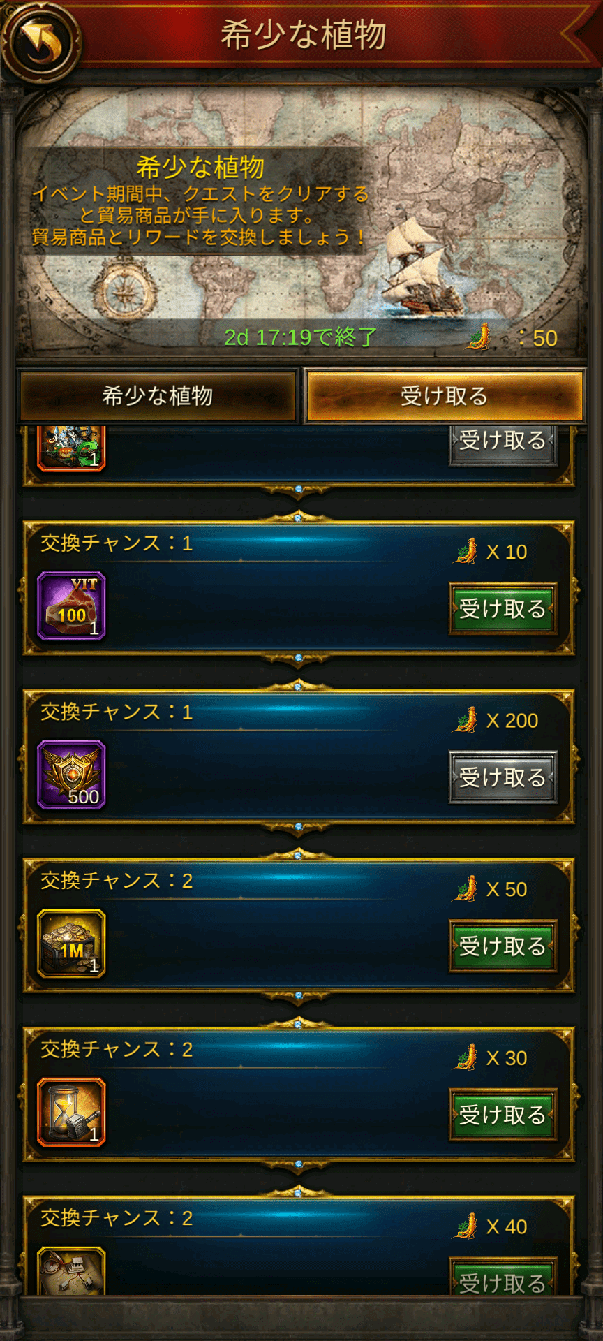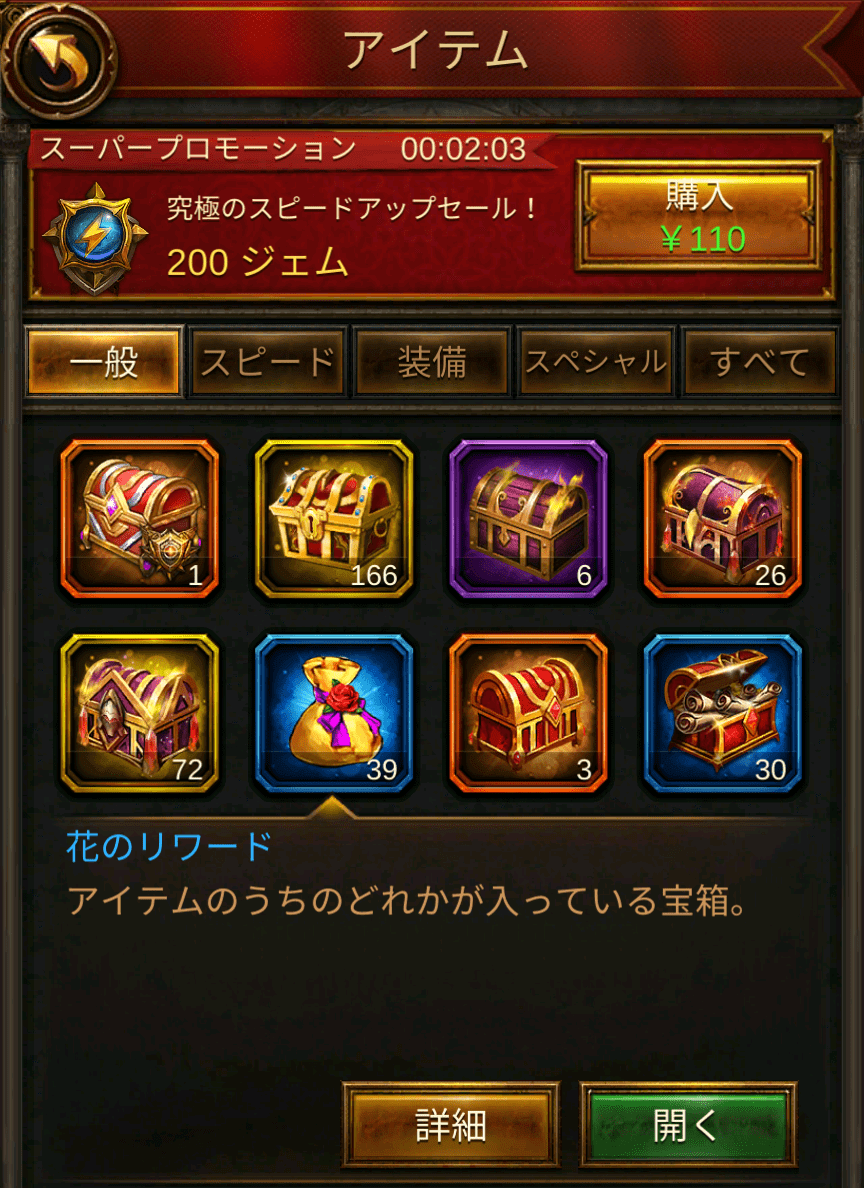 花のリワードを開けると運が良いと50スタミナが手に入ります