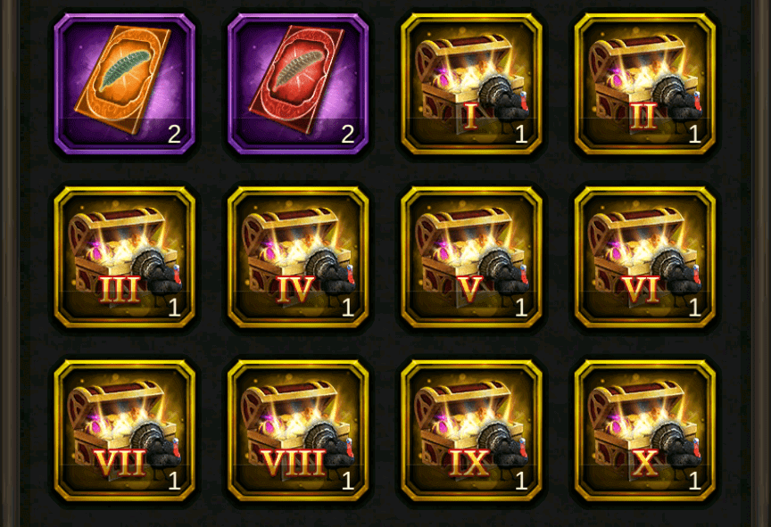 モンスターを討伐したり、資源回収するとカードが貰えます。感謝祭の時は七面鳥の羽というのになります。種類は以下のようにあります