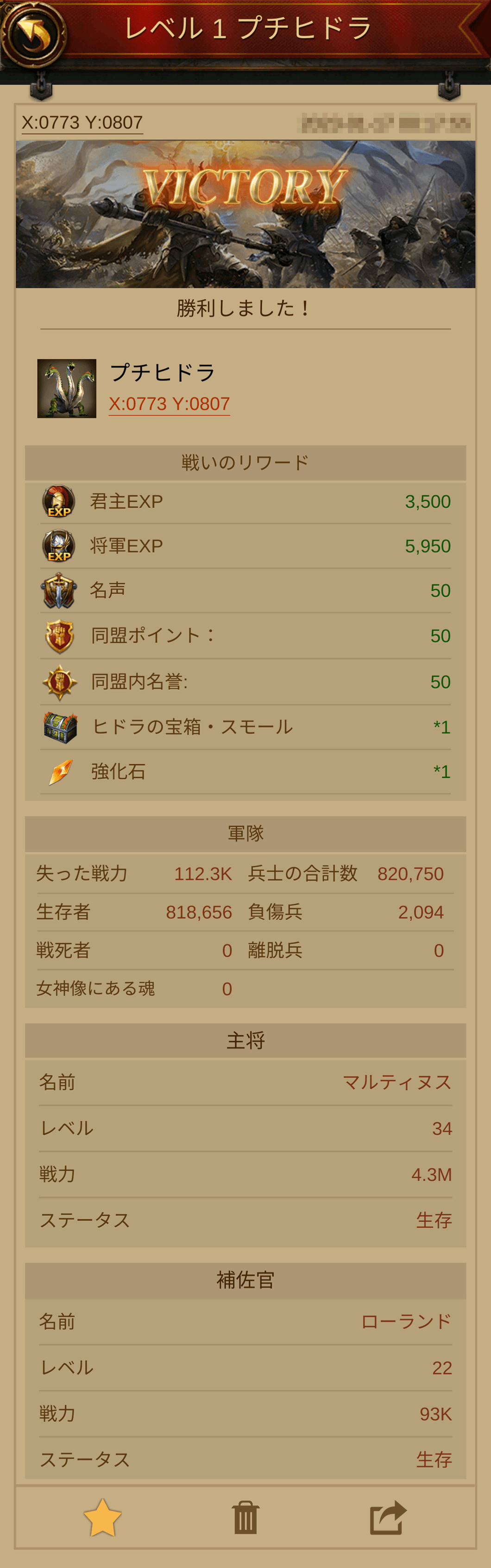 - スキル:栄光の騎士/このスキルを持つ将軍が攻撃を率いている場合、騎兵の攻撃力が30%、防御力とHPが15%アップします。