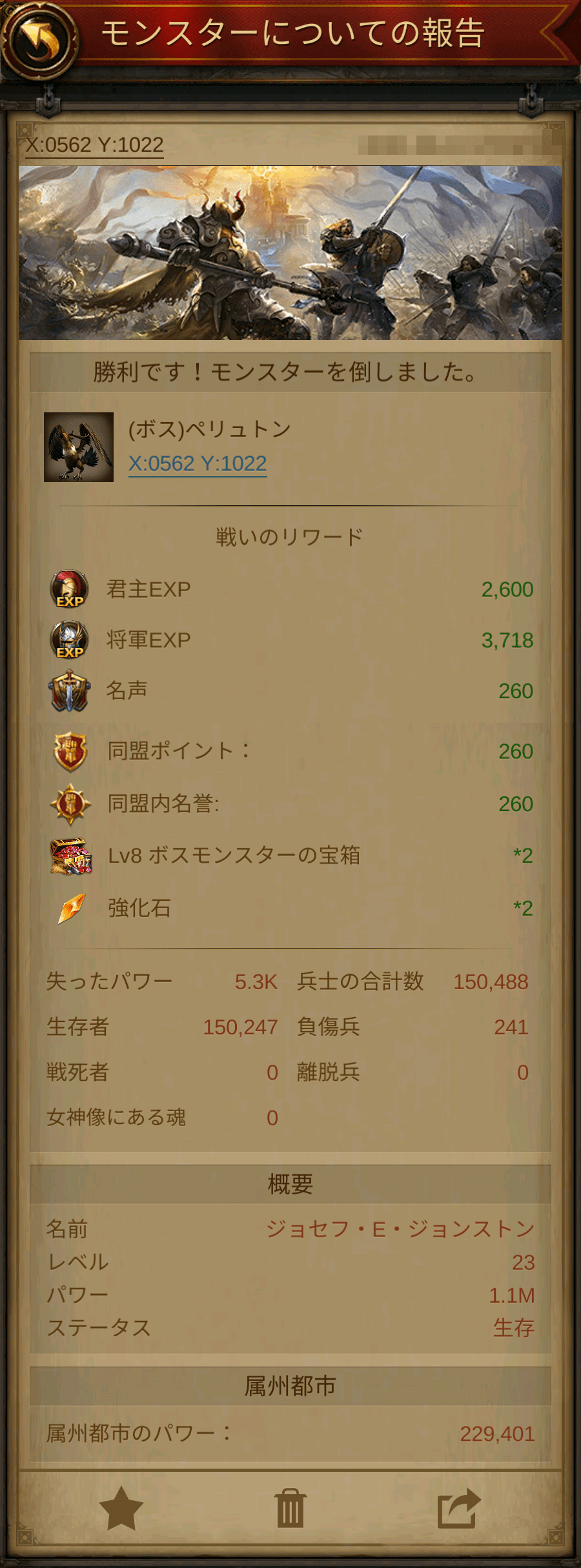 できるだけ負傷兵が少ないか、兵レベル10で同じぐらいの人数で行くか20万人ほどにできたらいいなーと思いました