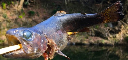 ↑4匹目はまさかのスレです。ジャクソンのTrout Tuneを使いました。2匹目もこれできました