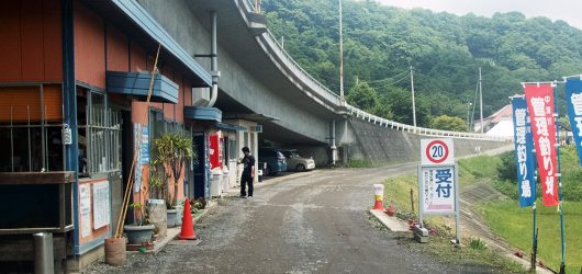 ↑駐車場の裏で魚釣りができます。