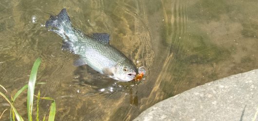 釣果としては3匹になります。ここのつり場はバーブレスフックでシングルフックしかだめのため、渓流で使うルアーは使いませんでした。クランクなどを使いました
