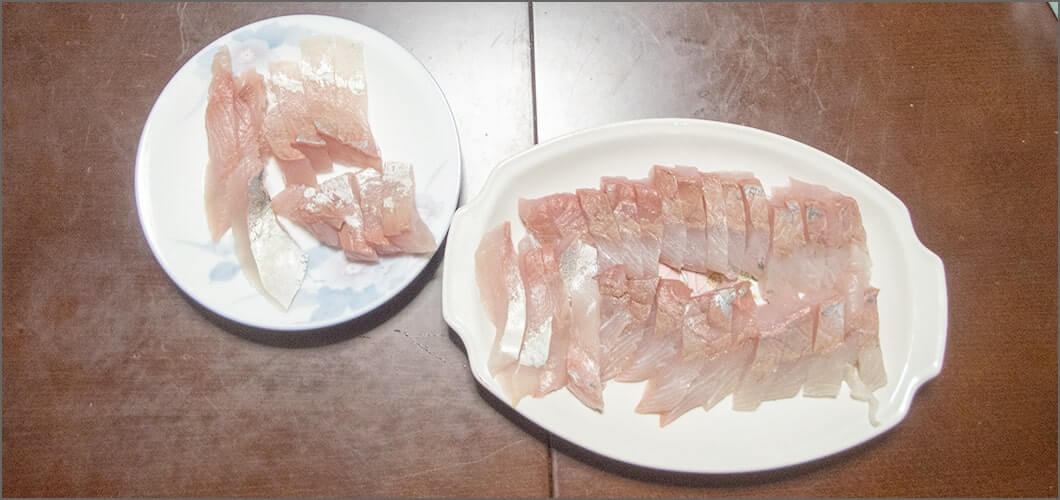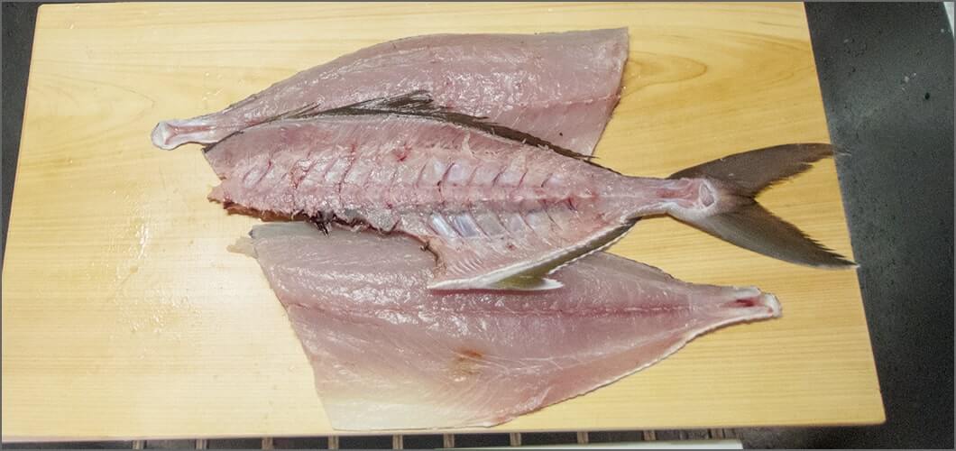 いつもの牛刀で三枚おろしにします。問題なく三枚おろしができました。