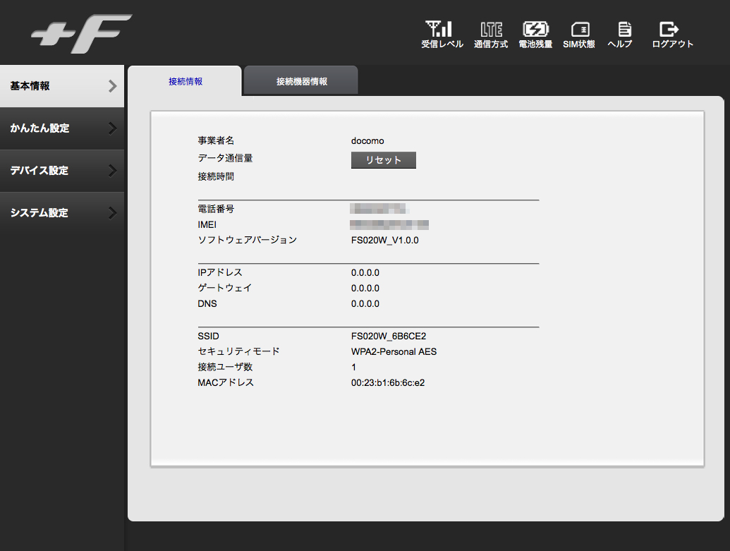 設定が終わったら再起動し、ちゃんと繋がるか確認します。logwでは自宅でiPhoneで認証して使いましたが速度は1Mと低速でした。ちなみに計測した時間帯は21時台になります。思った以上に遅い気がするなこれは・・・