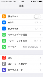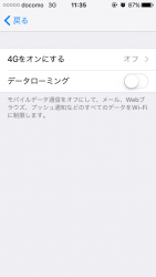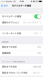 モバイルデータ通信をタップして設定画面を開きます。通信のオプションをタップします