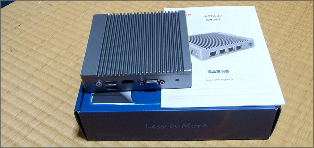 Skynewの品番IN-1という小型PCがありました。OSがなく、ストレージは32GBもあります。LANポートは全部で4つもあります。