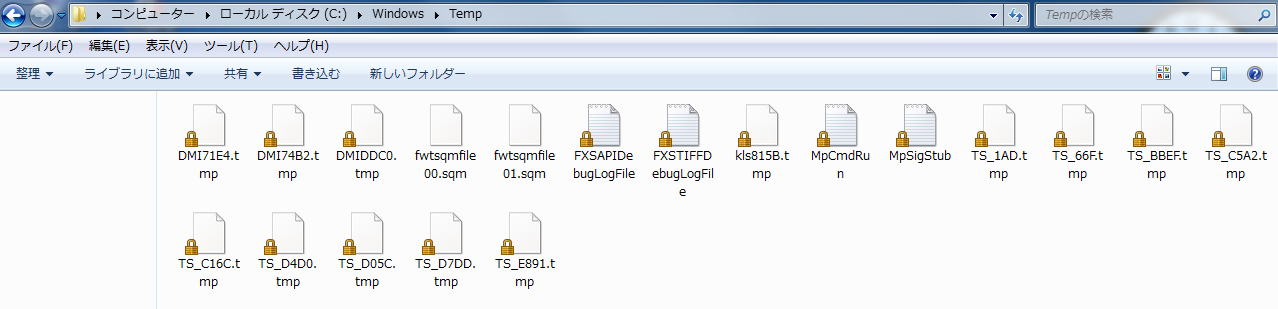 C:\Windows\Temp にアクセスします。この中にあるファイルを全部削除します。ここは一時的なファイルが生成されるとこで、なんらかの理由で削除されない事があるので手動で削除します。