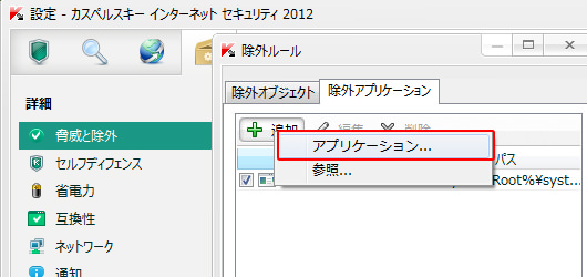除外アプリケーションのタブに移動して、追加をクリックします。