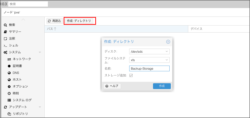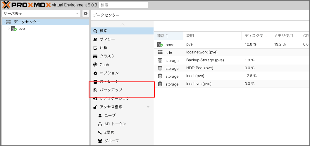 Proxmox VE-HDDを増設したので、バックアップ環境を構築する