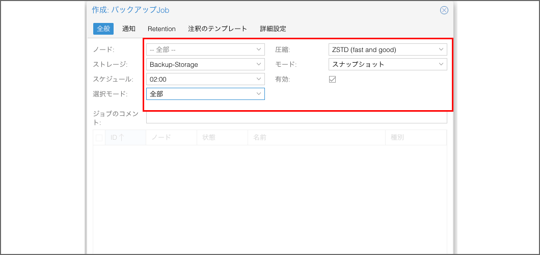 設定方法:自動バックアップジョブの作成