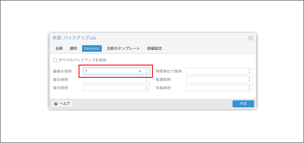 これで、「常に最新の7回分(1週間分)を保持し、それより古いものは削除する」という設定になります。