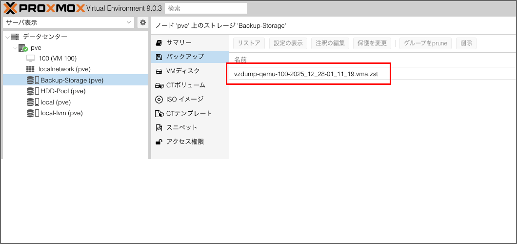 - Backup-Storage > バックアップ