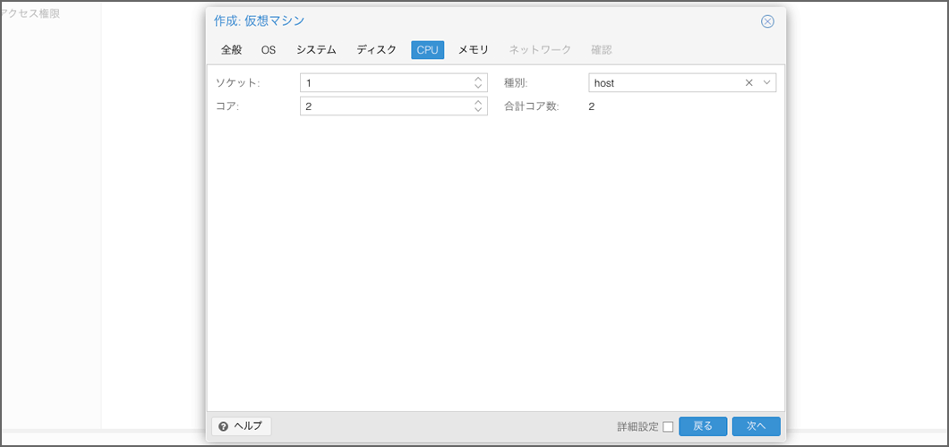 • 物理CPUの性能をフルに使いたい場合は、種別を host に変更するとパフォーマンスが向上します。