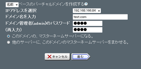 - このドメインの、マスターネームサーバーになる:DNSのnamed.confに追記され、設定ファイルが作成されます。
