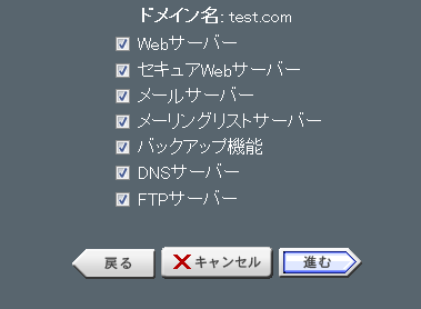 ここにチェックが入っているサーバーの設定をします。メールサーバーとメーリングサーバーのチェックを外せば、メール機能は使えなくなります。セキュアWEBサーバーは(SSL)の事になります。後はこのまま進むを押していけばいいです。