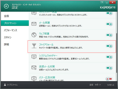 - クライアントセキュリティソフト:カスペルスキーインターネットセキュリティー2013
