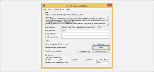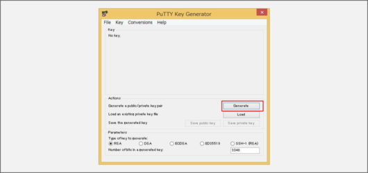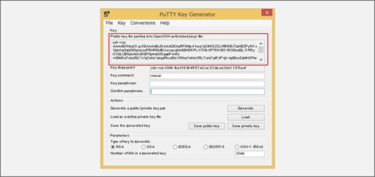 PuTTYgenを使って公開鍵と秘密鍵を作成する