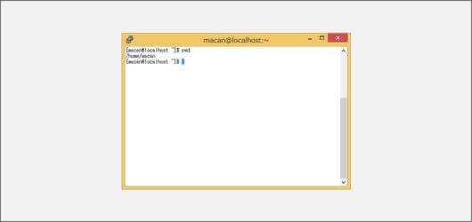 CentOSにmacaユーザーログインしています。ホームディレクトリにいます