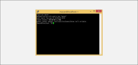 ログインに成功すると、macanユーザーで鍵認証成功したことになります。画像が文字化けしているのは、PuTTYはデフォルト文字コードがEUC-JPで接続しているためになります。CentOSはUTF-8なので文字化け起きております。接続するとき文字コードをUTF-8にすれば文字化けはおきません