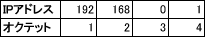 IPアドレス192.168.0.1等記述するします。この192等の3桁の数字をオクテットとといいます。左から第一オクテットで一番右が第4オクテットになります。