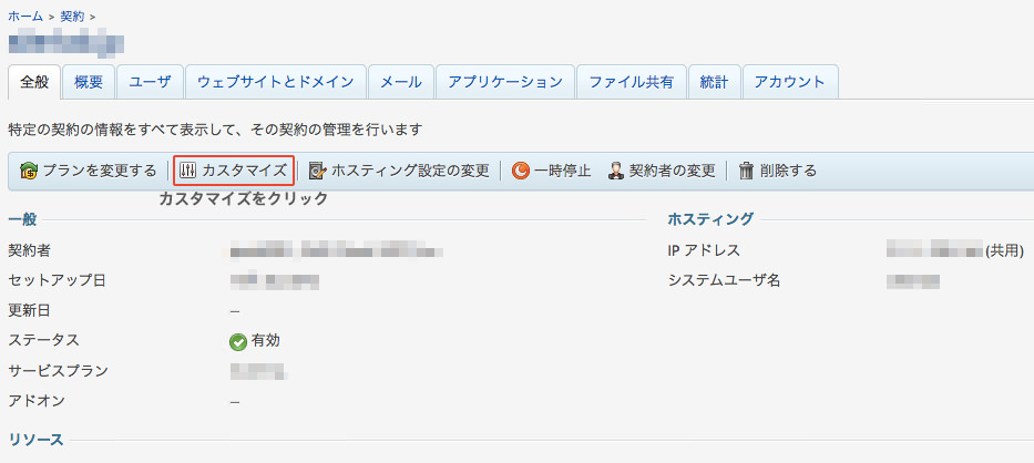 管理画面のカスタマイズをクリックします。