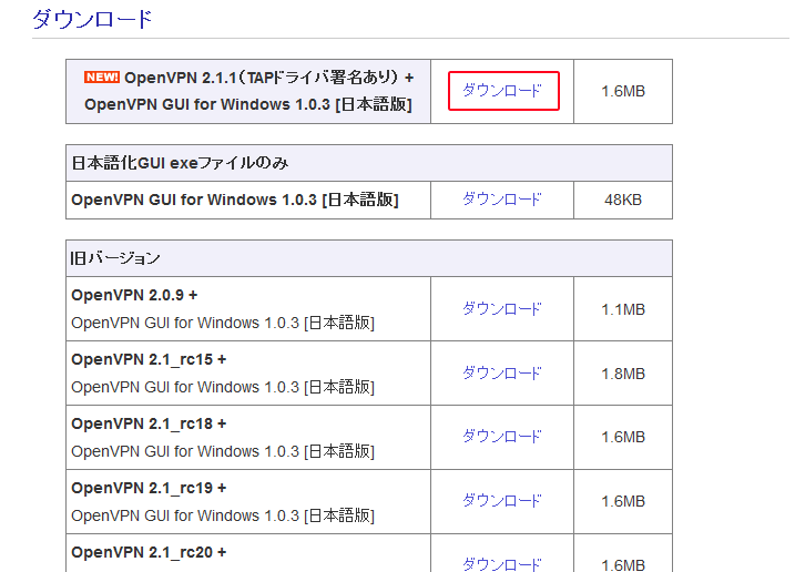 OpenVPNはSSL通信をしたり、証明書を使って認証するため、サーバーからクライアントの証明書などを持ってきてクライアントソフトをインストール下後に使います。今回は必要な証明書などを先にローカルにダウンロードします。
