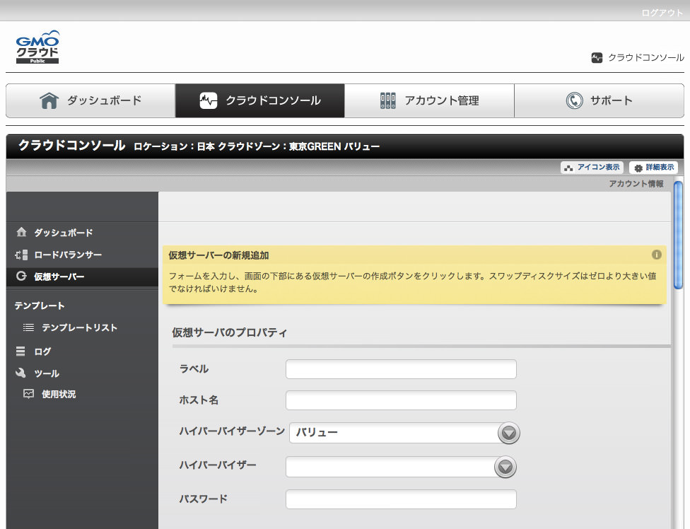 logwをクラウドサーバーに移行計画に伴い、GMOクラウドのクラウドサーバーを契約しました。
