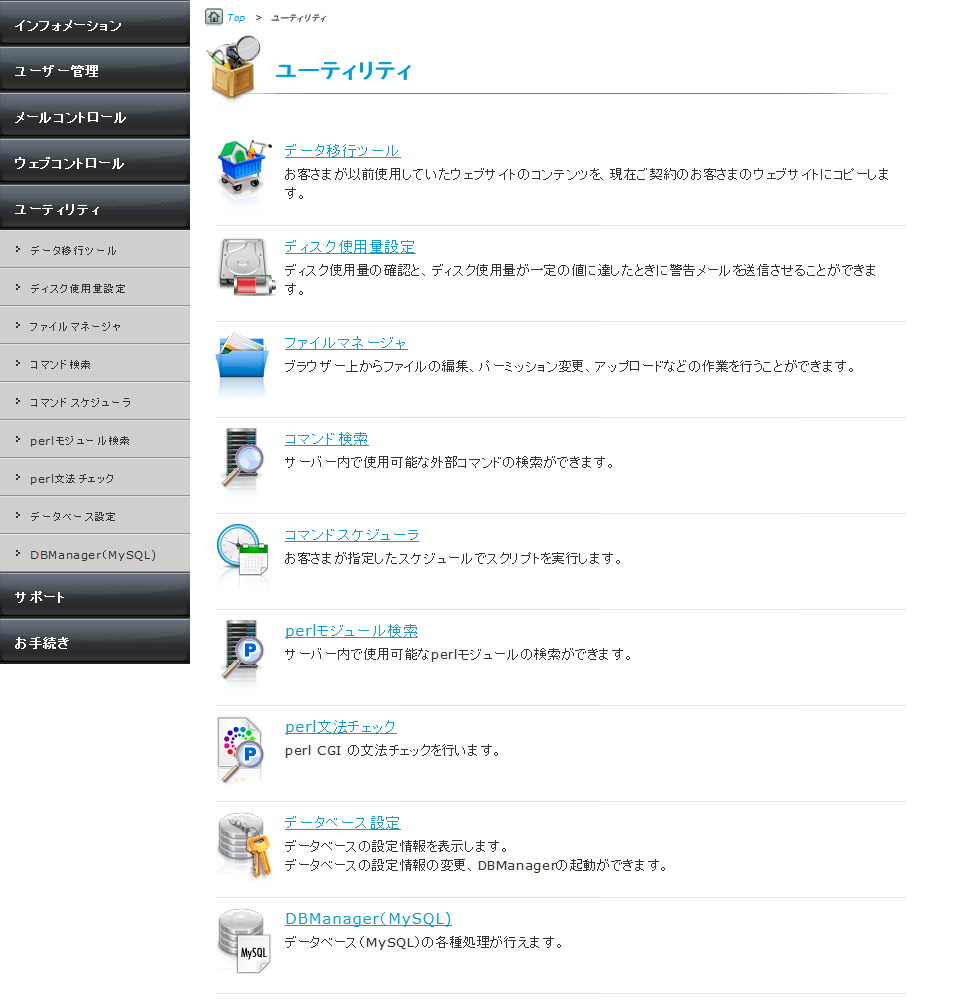 プランマネージャにログイン後ユーティリティーからデータベースを選択します。