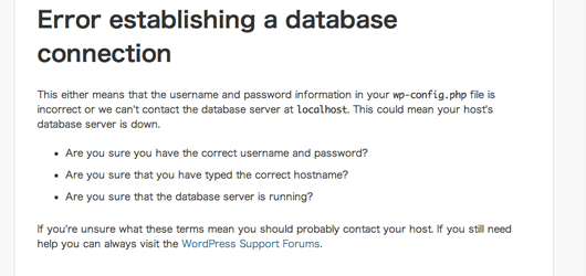 突然サイトに『Error establishing a database connection』とでました。このエラー文で検索したら以下のページがでてきました。