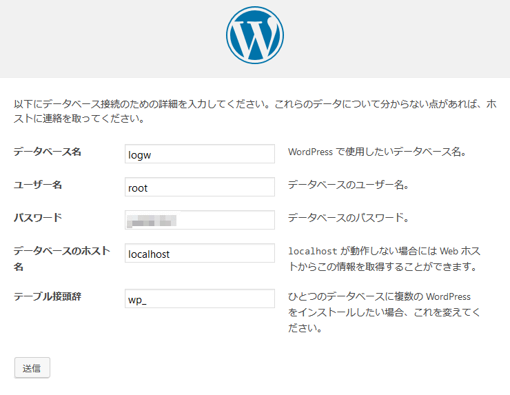 - バーチャルホスト名:wordpress