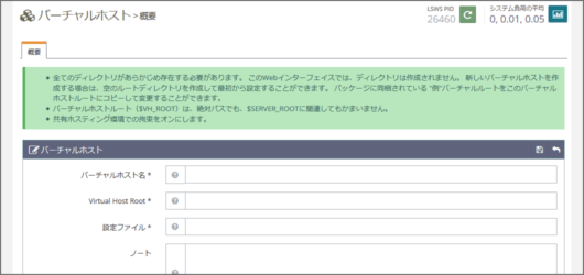 バーチャルホストをクリックします